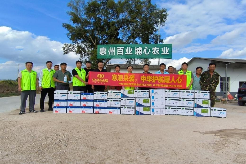 皇冠133诊断接口为充分发扬农业保障“保防救赔”要道中枢,护航农业坐褥默契,12月15日,中华财险惠州中心支公司鉴别向仲恺高新时刻产业开拓区下辖镇街及农户施济关连济急防灾物质,全力援救辖区防寒干事。